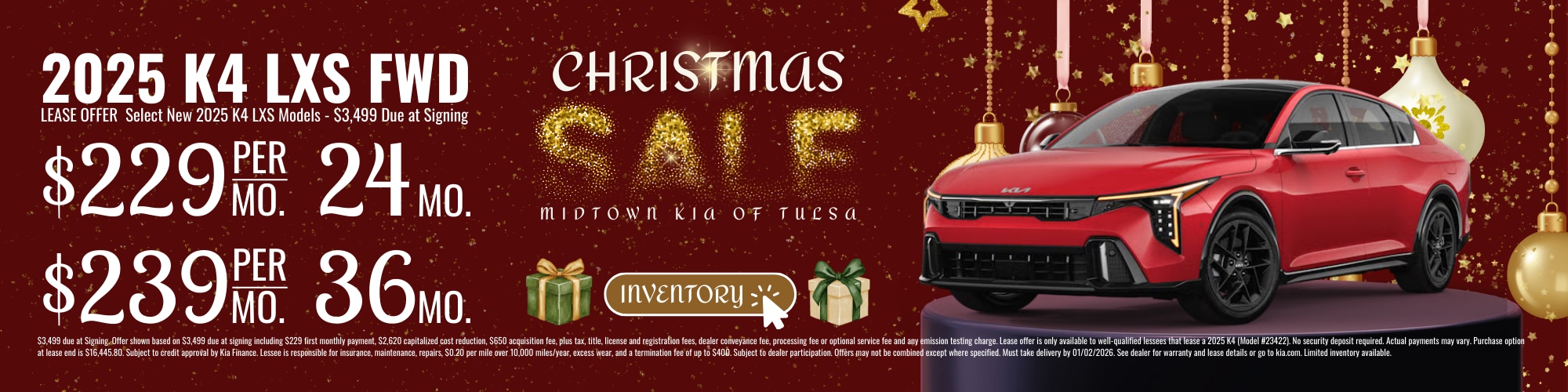 It's the New 2025 Kia K4 at Midtown Kia of Tulsa! Right Now, Choose from the 2025 Kia K4 EX (11), K4 GT-Line (10), LXS (18) and K4 GT-Line Turbo (4).