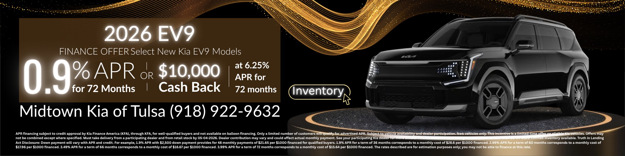 It's the new All-Electric 2026 Kia EV9 at Midtown Kia of Tulsa! Shop new EV9 inventory below.