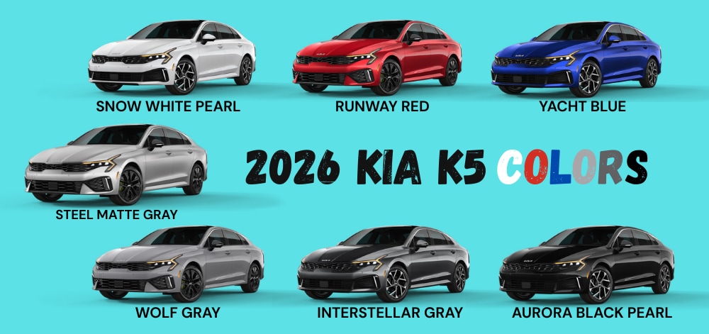 Compare the New 2026 Kia K5 Trim Levels, Dimensions, Colors & Starting *MSRP Pricing