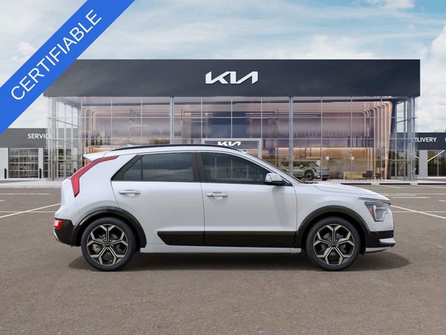 Located at our Kia dealership in Tulsa, this Snow White Pearl Kia Niro is a new 2025 Kia Niro EX Touring FWD SUV, and is complimented with a beautiful, Charcoal SynTex & Cloth Seat Trim.