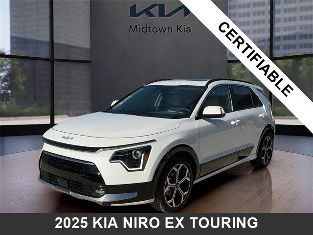 Located at our Kia dealership in Tulsa, this Snow White Pearl Kia Niro is a Certified Pre-Owned 2025 Kia Niro EX Touring FWD SUV, and is complimented with a beautiful, Gray SynTex & Cloth Seat Trim.