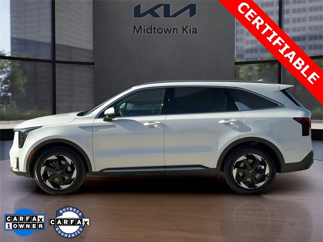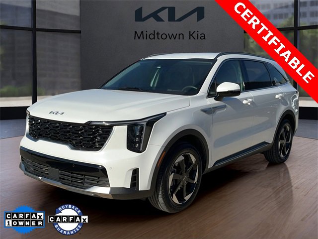 Located at our Kia Dealership in Tulsa, this Snow White Pearl Kia Sorento Hybrid, is a Used 2025 Kia Sorento Hybrid EX AWD SUV, and is complimented with a beautiful, Black Interior Seat Trim.