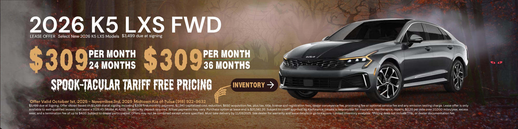 Whether you're searching for a new Kia K5 for sale, or you simply trying to research the current Kia K5 Incentives, find it now right here at Midtown Kia of Tulsa. Or, maybe you'd be interested in a quality used Kia K5. If so, then conveniently view our used Kia K5 inventory now...