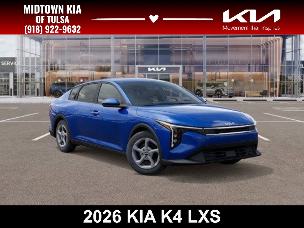 Located at our Tulsa Kia Dealership, this Deep Sea Blue Kia K4 is a New 2025 Kia K4 LXS Sedan, and is complimented with a beautiful, Gray & Black TriCot Cloth Seat Trim.