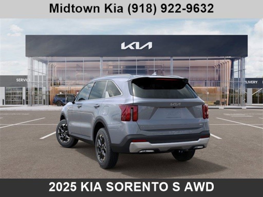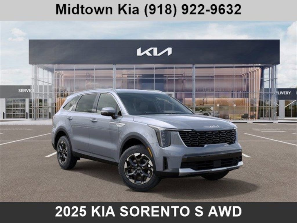 Located at our Kia Dealership in Tulsa, this Everlasting Silver Kia Sorento, is a New 2025 Kia Sorento S AWD SUV, and is complimented with a beautiful, Black SynTex Interior Seat Trim.
