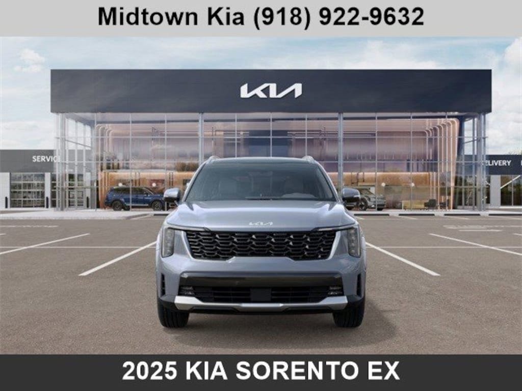Located at our Kia Dealership in Tulsa, this Everlasting Silver Kia Sorento, is a New 2025 Kia Sorento EX FWD SUV, and is complimented with a beautiful, Black SynTex Interior Seat Trim.