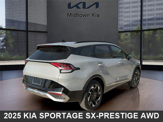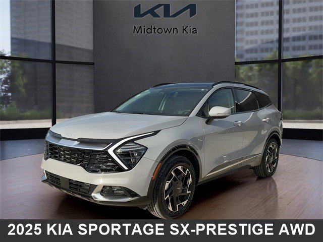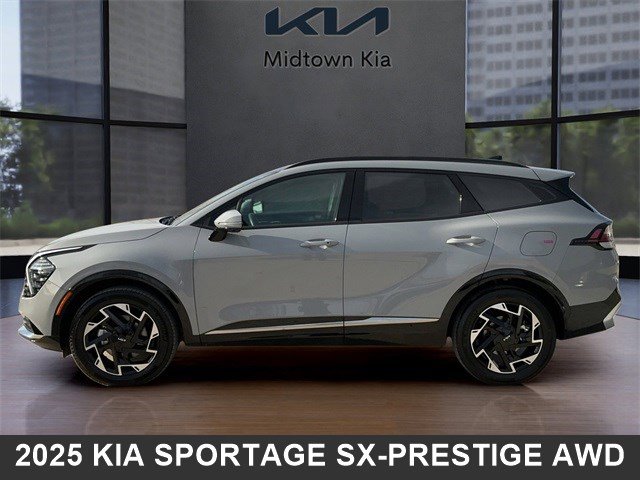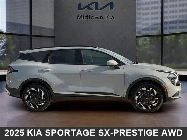 Located at our Kia Dealership in Tulsa, this Wolf Gray Kia Sportage is a Used 2025 Kia Sportage SX-Prestige AWD SUV, and is complimented with a beautiful, Perforated & Quilted Saturn Black SynTex Interior Seat Trim.