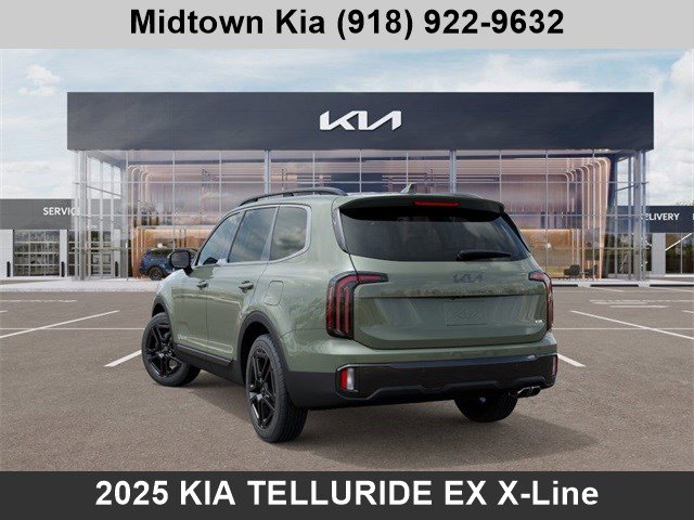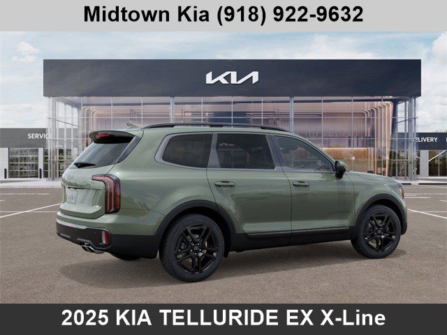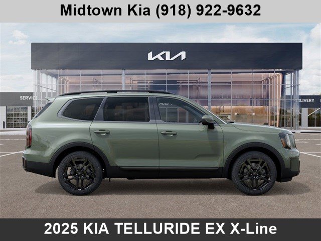 Located at our Tulsa Kia Telluride dealership, this Jungle Green Kia Telluride is a new 2025 Kia Telluride EX X-Line AWD SUV, and is complimented with a beautiful, Terracotta Leather Seat Trim.