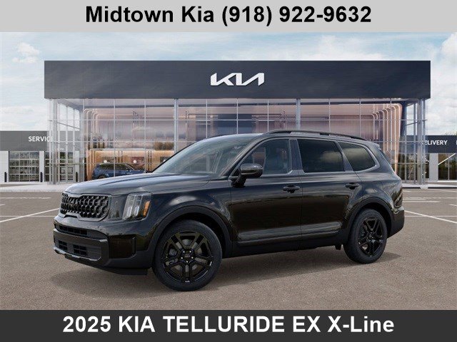 Located at our Tulsa Kia Telluride dealership, this Ebony Black Kia Telluride is a new 2025 Kia Telluride EX X-Line AWD SUV, and is complimented with a beautiful, Terracotta Leather Seat Trim.