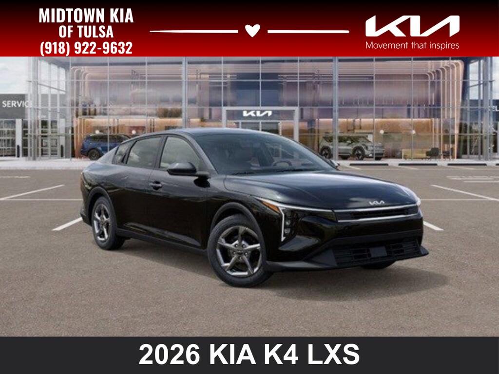 Located at our Kia dealership in Tulsa, this Aurora Black Pearl K4, is a New 2026 Kia K4 LXS Sedan, and is complimented with a beautiful, Black Tricot Cloth interior seat trim.