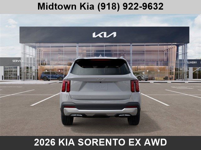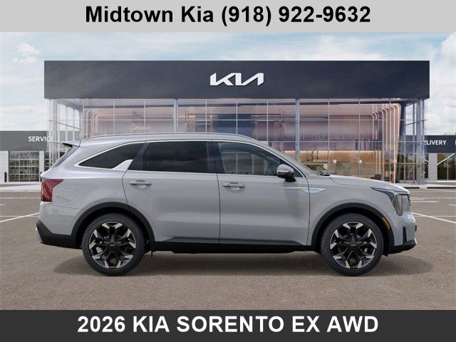 Located at our Kia Dealership in Tulsa, this Wolf Gray Kia Sorento, is a New 2026 Kia Sorento EX AWD SUV, and is complimented with a beautiful, Black SynTex Interior Seat Trim.