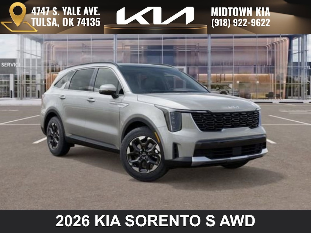 2026 KIA SORENTO S AWD FOR SALE TULSA. Recent Arrival! 23/28 City/Highway MPG AWD. 2.5L I4 DGI DOHC 16V LEV3-SULEV30 191hp 8-Speed Automatic AWD
