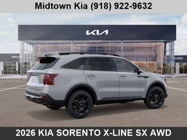 Recent Arrival! 2026 KIA SORENTO X-LINE SX TULSA OK. 20/27 City/Highway MPG AWD. 2.5L I4 DGI Turbocharged DOHC 16V LEV3-SULEV30 281hp 8 Speed Dual Clutch AWD
