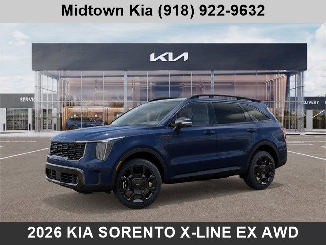 Located at our Tulsa Kia dealership, this Midnight Lake Blue Kia Sorento, is a New 2026 Kia Sorento X-Line EX AWD SUV, and is complimented with a beautiful, Black SynTex Interior Seat Trim.