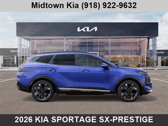 Located at our Tulsa Kia dealership, this Nebular Blue Kia Sportage, is a New 2026 Kia Sportage SX-Prestige FWD SUV, and is complimented with a beautiful, Perforated and Quilted Saturn Black SynTex seat trim.