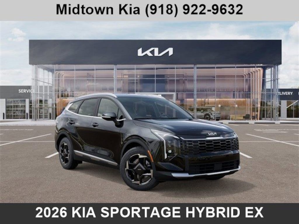 Located at our Tulsa Kia Dealer, this Fusion Black Kia Sportage Hybrid, is a new 2026 Kia Sportage Hybrid EX AWD SUV, and is complimented with a beautiful, Perforated Saturn Black & Misty Gray SynTex interior seat trim.