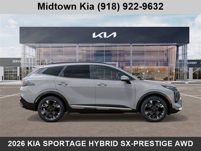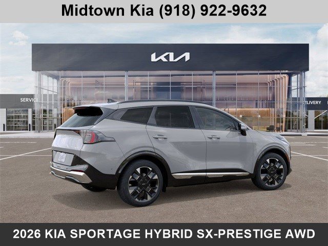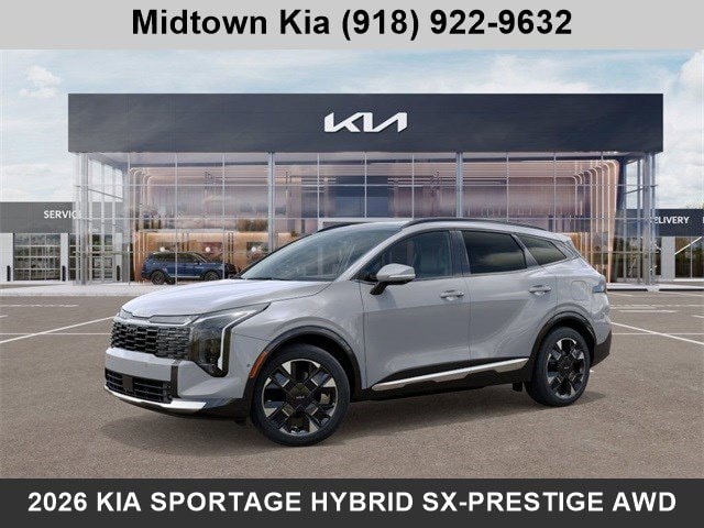Located at our Tulsa Kia Dealership, this Wolf Gray Kia Sportage Hybrid is a New 2026 Kia Sportage Hybrid SX-Prestige AWD SUV, and is complimented with a beautiful, Perforated & Quilted Saturn Black SynTex interior seat trim.