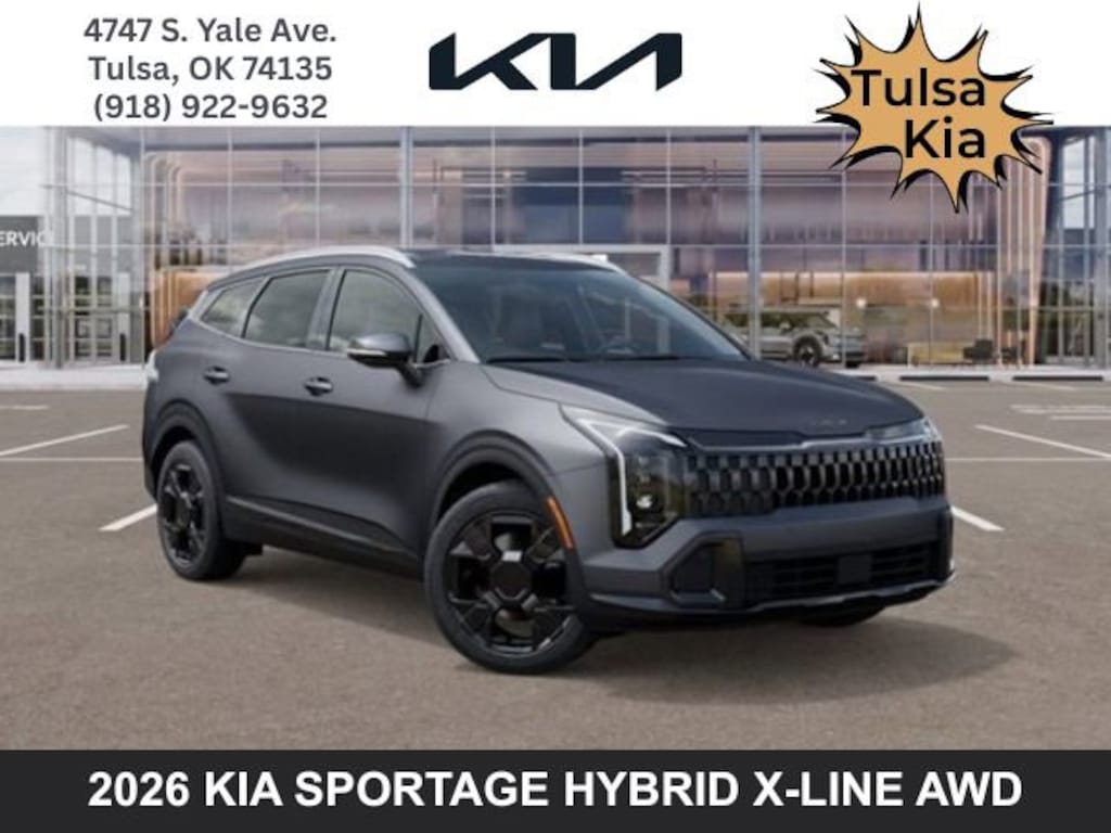 Located at our Tulsa Kia Dealership, this Shadow Matte Gray Kia Sportage Hybrid is a New 2026 Kia Sportage Hybrid X-Line AWD SUV, and is complimented with a beautiful, Perforated & Quilted Terracotta Brown SynTex interior seat trim.
