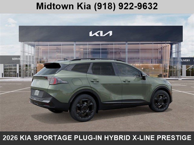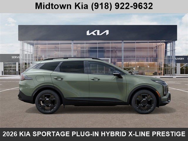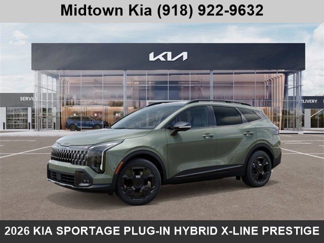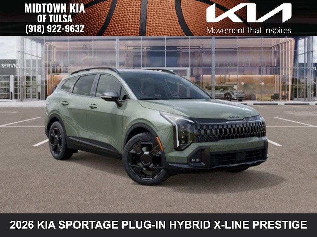 Located at our Tulsa Kia dealer, this Jungle Green Kia Sportage Plug-In Hybrid, is a new 2026 Kia Sportage Plug-In Hybrid X-Line Prestige AWD SUV, and is complimented with a beautiful, Perforated & Quilted Saturn Black SynTex seat trim.