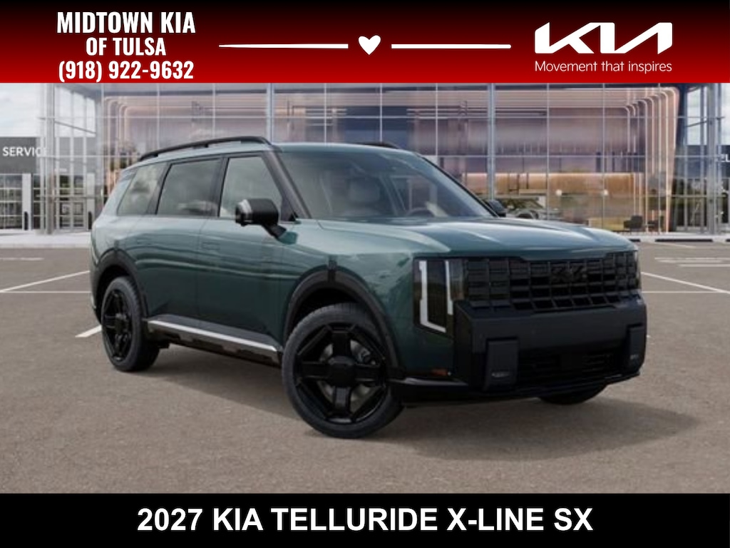 Located at our Kia Telluride dealership in Tulsa, this Black Jade Green Telluride is a New 2027 Kia Telluride X-Line SX AWD SUV.