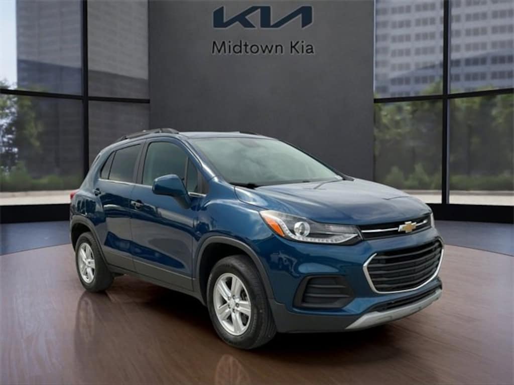 Located at our Kia dealership in Tulsa, this Pacific Blue Metallic Chevy Trax, is a Used 2021 Chevrolet Trax LT AWD SUV, and is complimented with a beautiful, Jet Black interior seat trim.