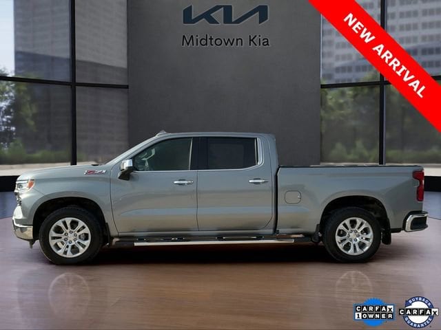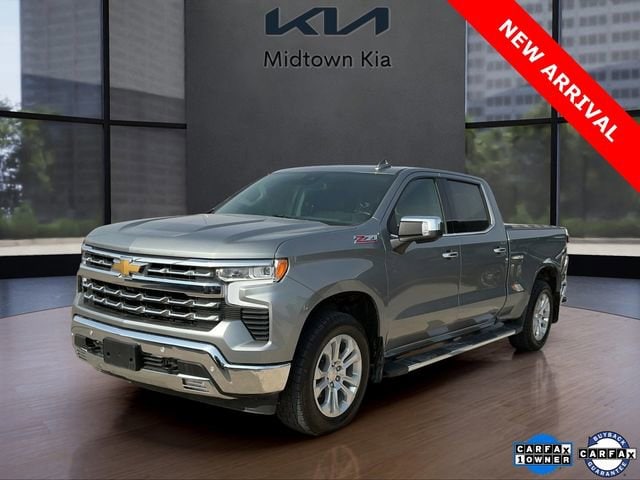 Located at our Kia dealership in Tulsa, this Sterling Gray Metallic Chevy Silverado, is a Used 2024 Chevrolet Silverado 1500 LTZ Crew Cab 4x4 Truck, and is complimented with a beautiful, Black interior seat trim.