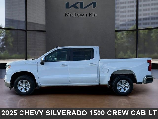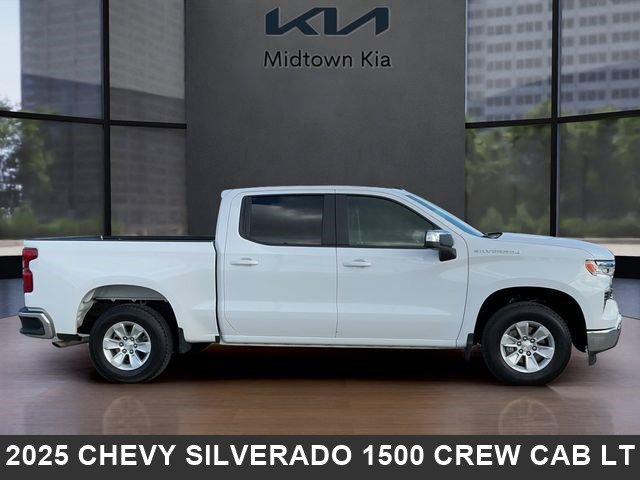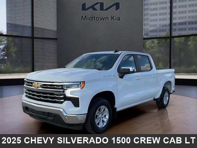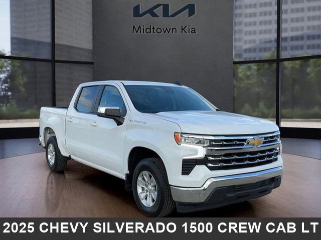 Located at our Kia dealership in Tulsa, this Summit White Chevy Silverado, is a Used 2025 Chevrolet Silverado 1500 Crew Cab LT 4x2 Truck, and is complimented with a beautiful, Black interior seat trim.