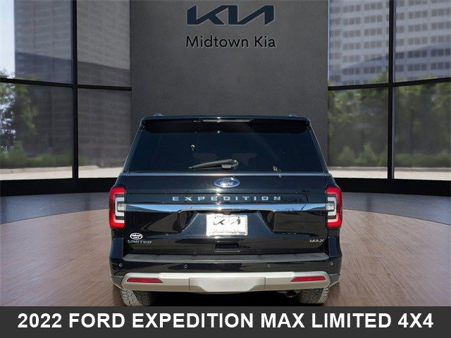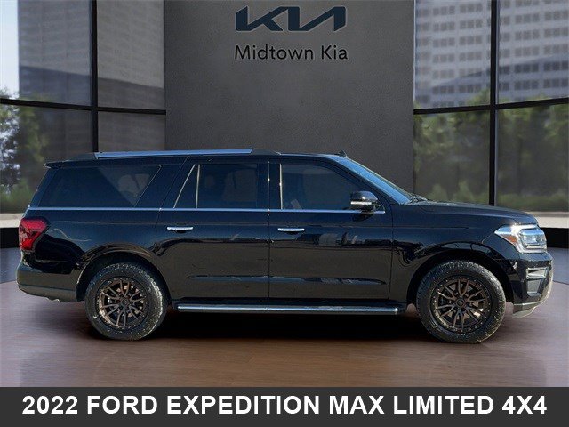 Located at our Kia dealership in Tulsa, this Agate Black Metallic Ford Expedition, is a Used 2022 Ford Expedition Max Limited 4WD SUV, and is complimented with a beautiful, Mahogany interior seat trim.