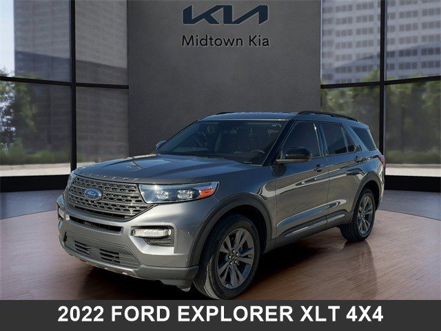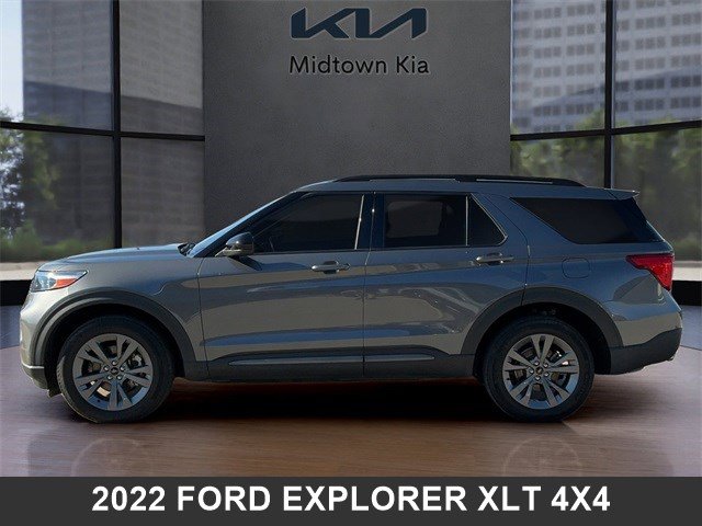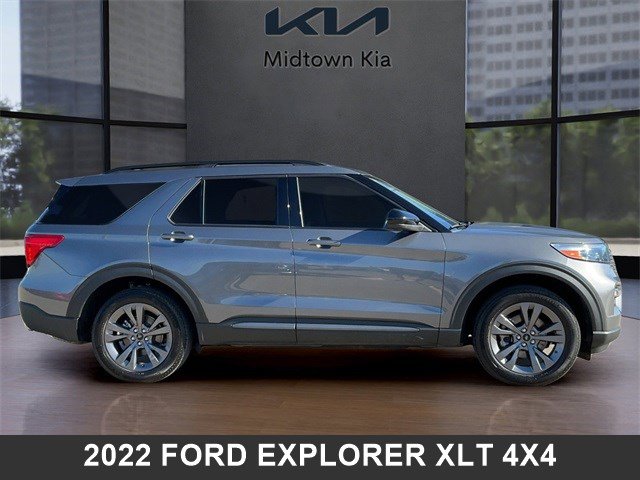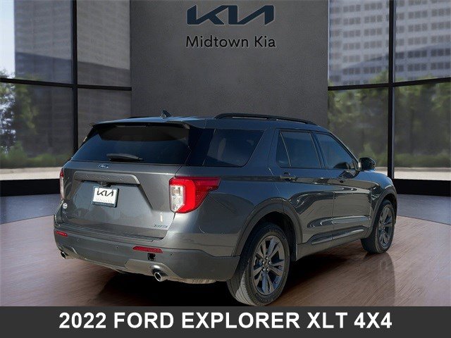Located at our Kia dealership in Tulsa, this Carbonized Gray Metallic Ford Explorer, is a Used 2022 Ford Explorer XLT 4x4 SUV, and is complimented with a sweet, Light Slate interior seat trim.