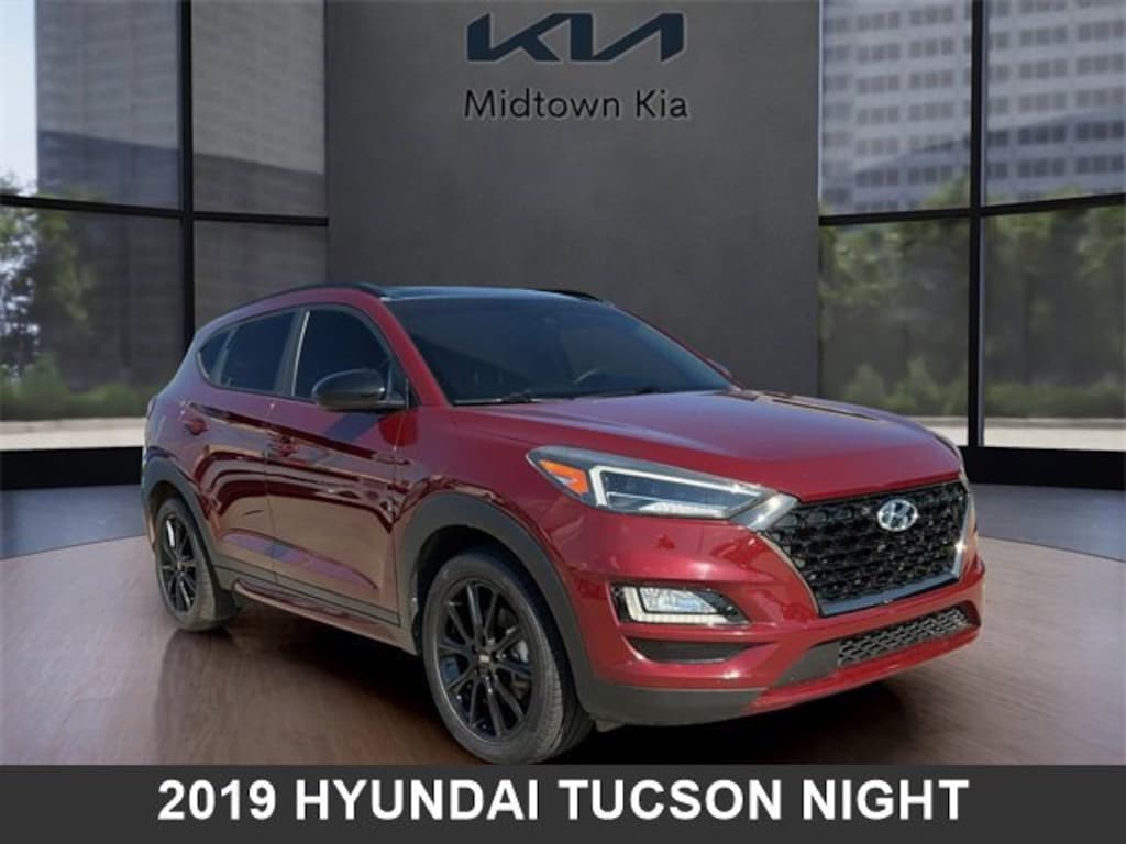 Located at our Kia dealership in Tulsa, this Gemstone Red Hyundai Tucson, is a Used 2019 Hyundai Tucson Night FWD SUV, and is complimented with a beautiful, Black interior seat trim.