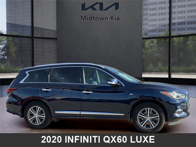 Located at our Kia dealership in Tulsa, this Hermosa Blue INFINITI QX60, is a Used 2020 INFINITI QX60 LUXE AWD SUV, and is complimented with a beautiful, Graphite interior seat trim.