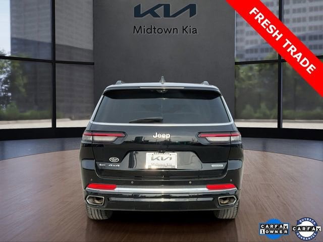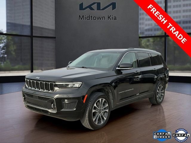 Located at our Kia dealership in Tulsa, this Diamond Black Crystal Jeep Grand Cherokee, is a Used 2021 Jeep Grand Cherokee L Overland 4WD SUV, and is complimented with a beautiful, Steel Gray / Global Black interior seat trim.