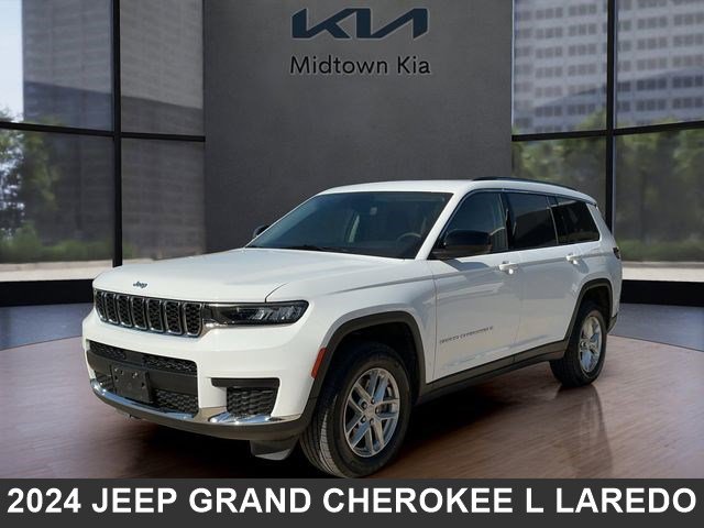 Located at our Kia dealership in Tulsa, this Bright White Jeep Grand Cherokee, is a Used 2024 Jeep Grand Cherokee L Laredo SUV, and is complimented with a beautiful, Black interior seat trim.