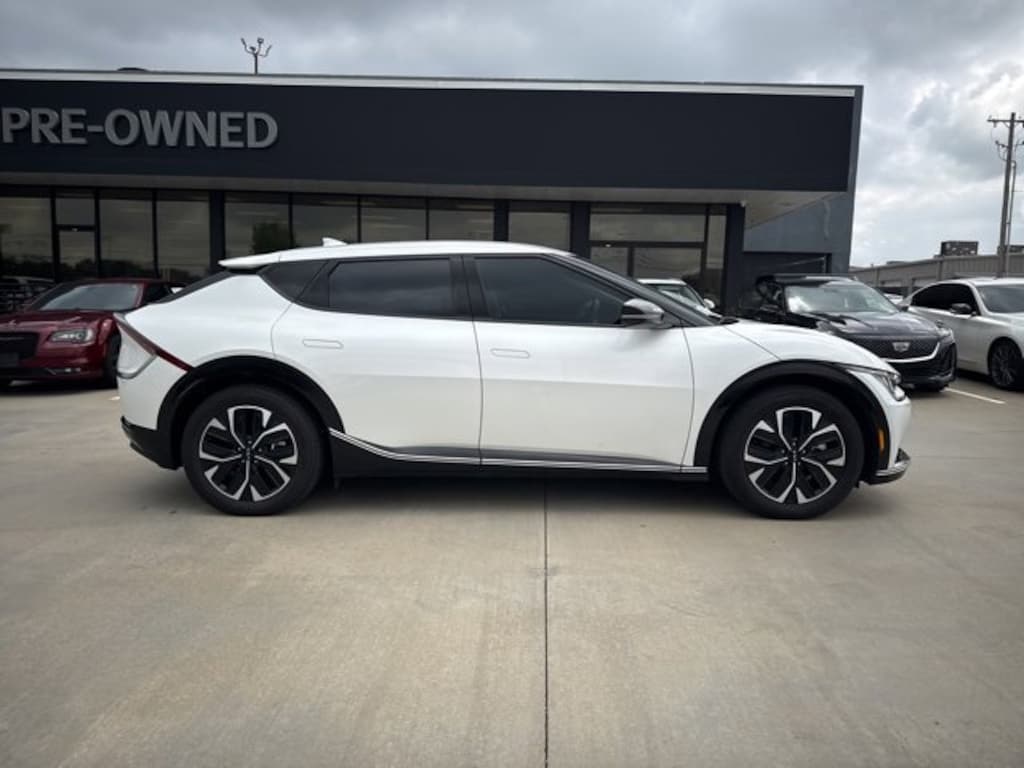 Located at our Tulsa Kia Dealership, this Snow White Pearl EV6 is a 2023 Kia EV6 Wind RWD CUV, and is complimented with a beautiful Black Interior.