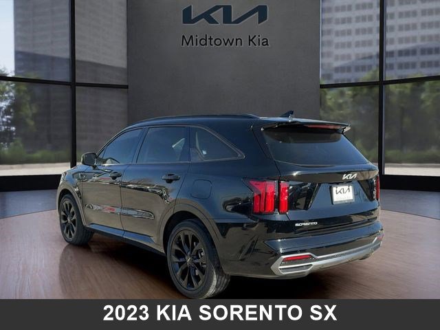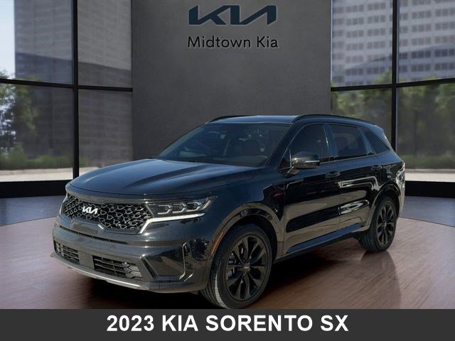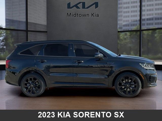 Located at our Kia Dealership in Tulsa, this Ebony Black Kia Sorento, is a Used 2023 Kia Sorento SX FWD SUV, and is complimented with a beautiful, Black SynTex Interior Seat Trim.