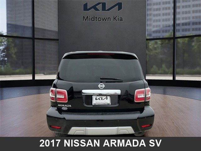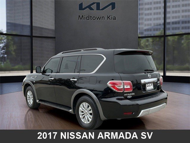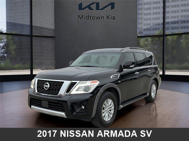 Located at our Kia dealership in Tulsa, this Super Black Nissan Armada, is a Used 2017 Nissan Armada SV SUV, and is complimented with a beautiful, Charcoal interior seat trim.