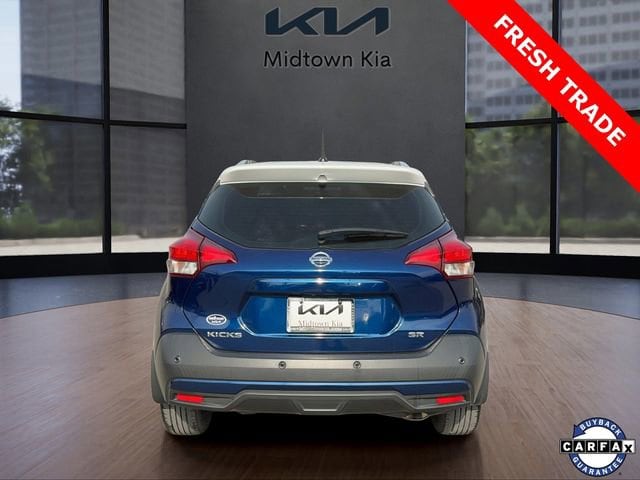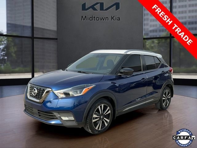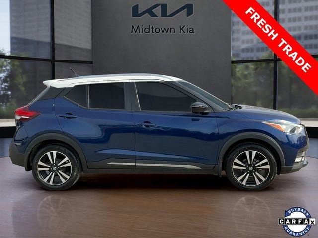 Located at our Kia Dealership in Tulsa, this Deep Blue Pearl/Fresh Powder Nissan Kicks, is a Used 2020 Nissan Kicks SR FWD SUV, and is complimented with a beautiful, Charcoal Interior Seat Trim.