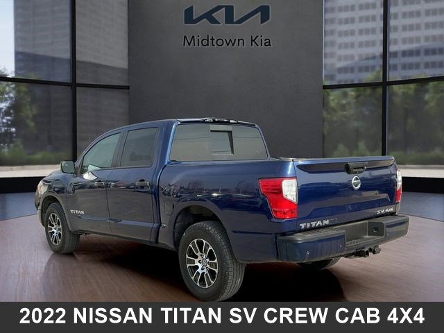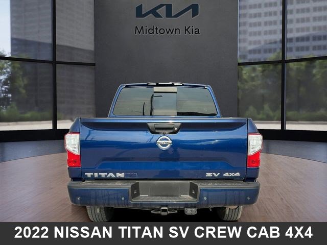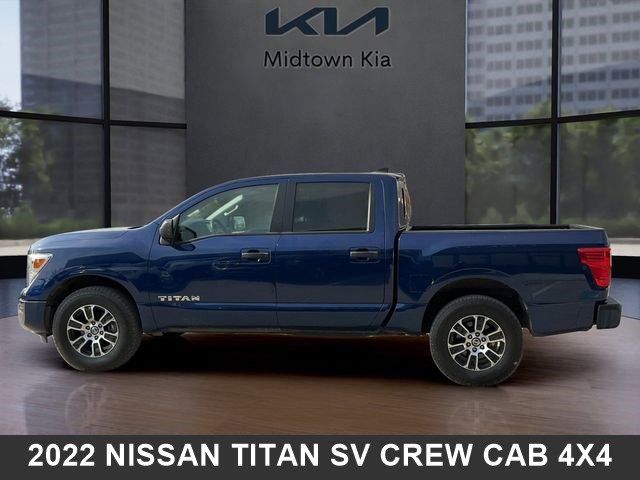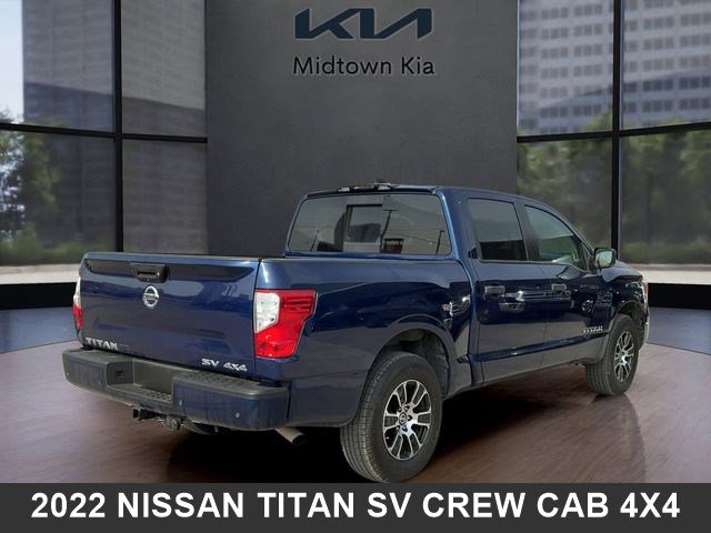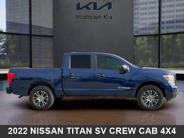 2022 Nissan Titan Titan SV, 5.6L V8 DOHC 32V 400hp, 4WD, Deep Blue Pearl Metallic, Black w/Cloth Seat Trim, 6 Speakers, Alloy wheels, AM/FM radio: SiriusXM, Blind Spot Warning, Electronic Stability Control, Financing is available for everyone, Fully automatic headlights, Illuminated entry, Local Trade, NissanConnect featuring Apple CarPlay and Android Auto, Panic alarm, Radio: NissanConnect w/Navigation, Rear Parking Sensors, Remote keyless entry, Security system, Speed control, Steering wheel mounted audio controls, Tulsa Used Car Super Store, Wheels: 18" x 8" Silver Painted Alloy. Deep Blue Pearl Metallic 9-Speed Automatic 4WD