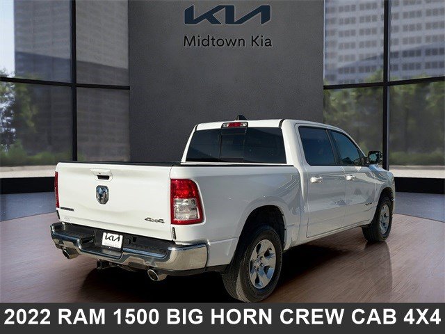 Located at our Kia dealership in Tulsa, this Bright White Ram 1500, is a Used 2022 Ram 1500 Big Horn/Lone Star Crew Cab 4x4 Truck, and is complimented with a beautiful, Black interior seat trim.