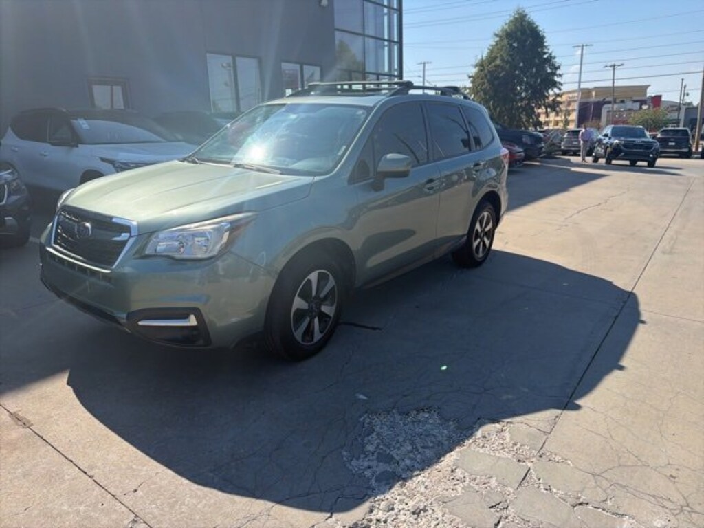 2017 Subaru Forester 2.5i Premium 4D Sport Utility Jasmine Green Metallic 2.5L 4-Cylinder DOHC 16V VVT Lineartronic CVT AWD 17" Alloy Wheels, 6 Speakers, All-Weather Package, Alloy wheels, AM/FM radio: SiriusXM, Automatic temperature control, Cargo Tray, Cloth Upholstery, Electronic Stability Control, Emergency communication system: STARLINK, Exterior Parking Camera Rear, Financing is available for everyone, Heated Exterior Mirrors, Heated Front Seats, Illuminated entry, Local Trade, Never a Rental, Panic alarm, Power driver seat, Power moonroof, Radio: Subaru Starlink 7.0" Multimedia Plus System, Remote keyless entry, Roof rack: rails only, Security system, Speed control, Spoiler, Steering wheel mounted audio controls, Tulsa Used Car Super Store, Windshield Wiper De-Icer.