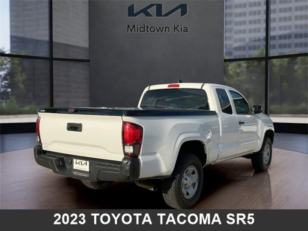 Located at our Kia Dealership in Tulsa, this White Toyota Tacoma, is a Used 2023 Toyota Tacoma SR5 4x2 Access Cab Mid-Size Truck, and is complimented with a sweet, Black Seat Trim.